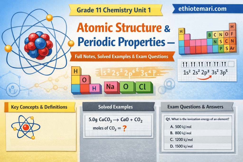 Welcome, dear student! In this unit, we will learn about atoms — what they are made of, how scientists discovered their parts, and how the arrangement of electrons affects the properties of elements. This is one of the most important units in chemistry, so let’s take it step by step.