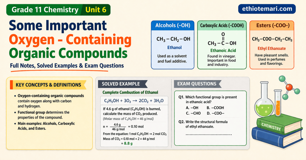 Welcome dear student! In this unit, we will study several very important families of organic compounds that all contain oxygen. These compounds are everywhere in our daily lives — from the ethanol in beverages and the ether used as anesthesia, to the flavors in fruits (esters) and the fats in our food. Let’s learn them one by one.